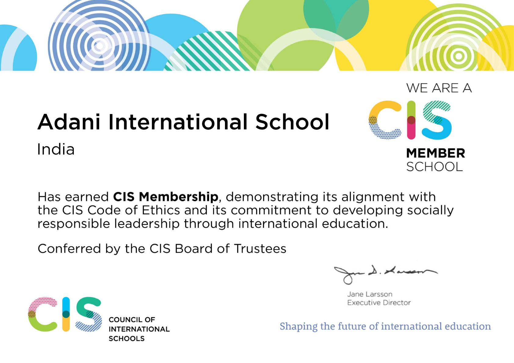 The school is also a member of the Council of International Schools (CIS), a global association dedicated to high-quality international education. CIS membership affirms the school’s focus on effective governance, safeguarding and child protection, and ongoing school improvement through international best practice and collaboration.